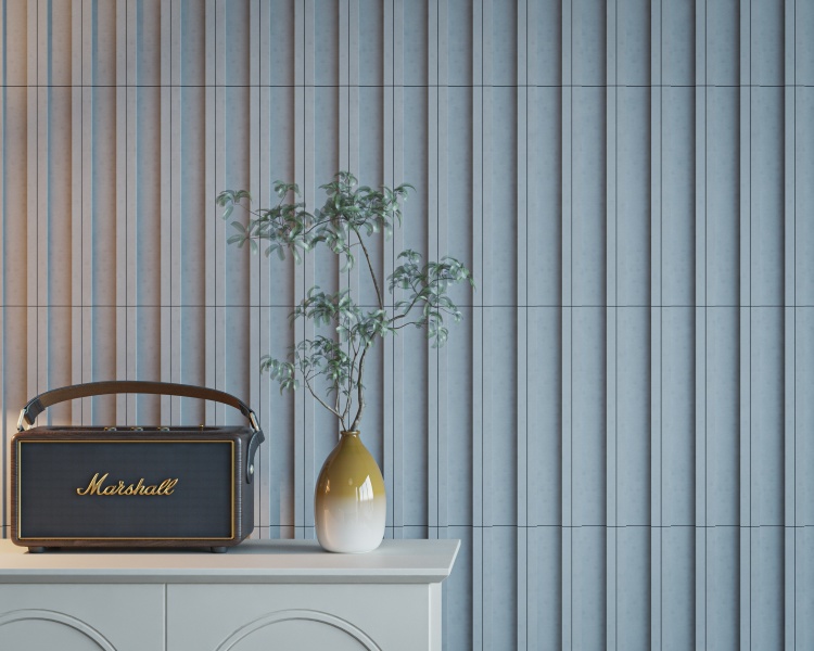 แผ่นกระเบื้องปูผนัง 3D Series Boxie ลาย Verge รูปแบบขอบเส้นตรงแนวตั้ง มิติร่องต่อกัน เพิ่มให้พื้นที่ ดูสูงขึ้นให้ความรู้สึกมั่นคงและเรียบง่ายในเวลาเดียวกัน